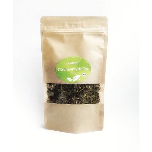 Der erlesene Tee wird aus hochwertigen Bio Zitronenmyrteblättern hergestellt und enthält keine weiteren Zusätze. Er ist so intensiv, dass man selbst für eine Kanne Tee nur wenig von den Blättern benötigt. Der duówell® Zitronenmyrte Tee entwickelt nach ca. 5 Minuten Brühzeit ein mildes, elegantes Aroma, kann aber auch bis 15 Minuten ziehen, wenn man einen aromatischen und starken Tee bevorzugt. Er eignet sich auch hervorragend als Eistee.